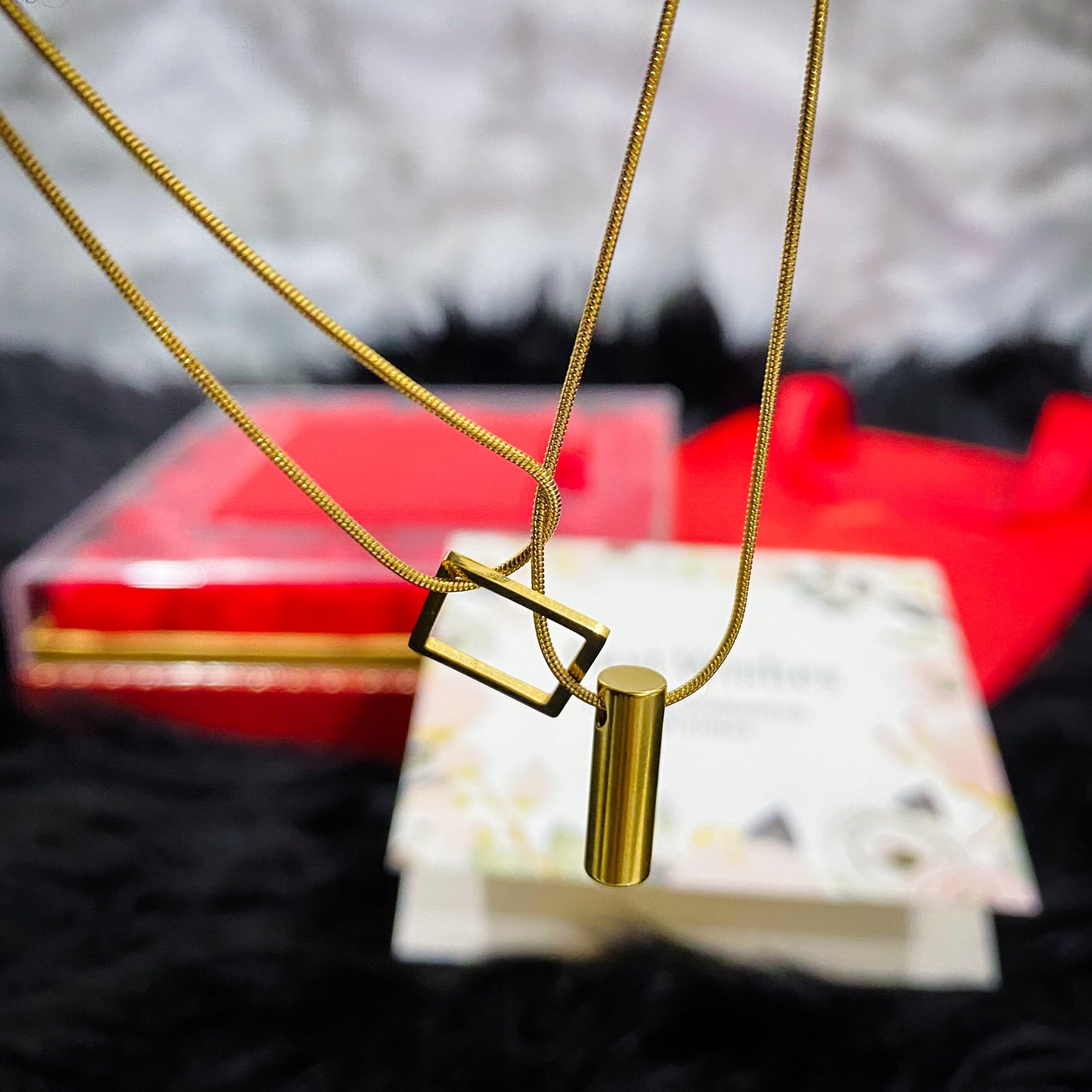 Un Écrin de Roses : Le collier est niché dans un écrin spectaculaire, bordé de roses d’un rouge intense. Ces fleurs, symboles d’amour et de passion, créent un effet visuel saisissant et transforment ce bijou en une véritable déclaration.