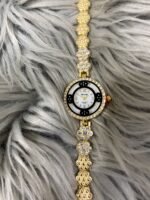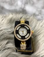 Design Scintillant : Son bracelet est délicatement sculpté en forme de fleurs ornées de cristaux, et son cadran est protégé par une lunette entièrement sertie de strass.