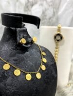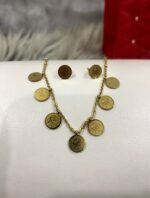 Style Unique : Le collier et les puces d’oreilles sont ornés de pendentifs inspirés de pièces de monnaie anciennes, pour un look bohème-chic très tendance.