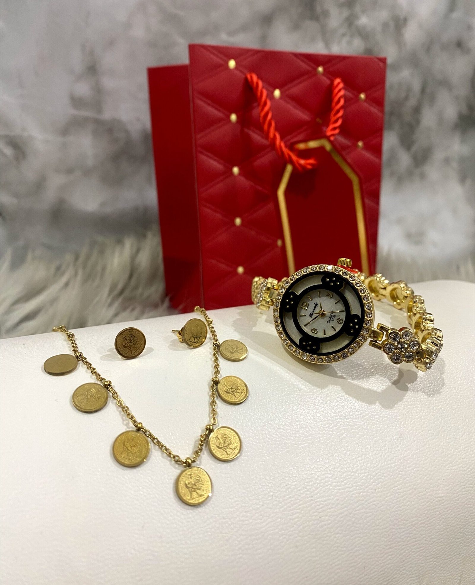 Coffret « Duo Divin » : Montre-Bijou & Parure en Acier Inoxydable Doré