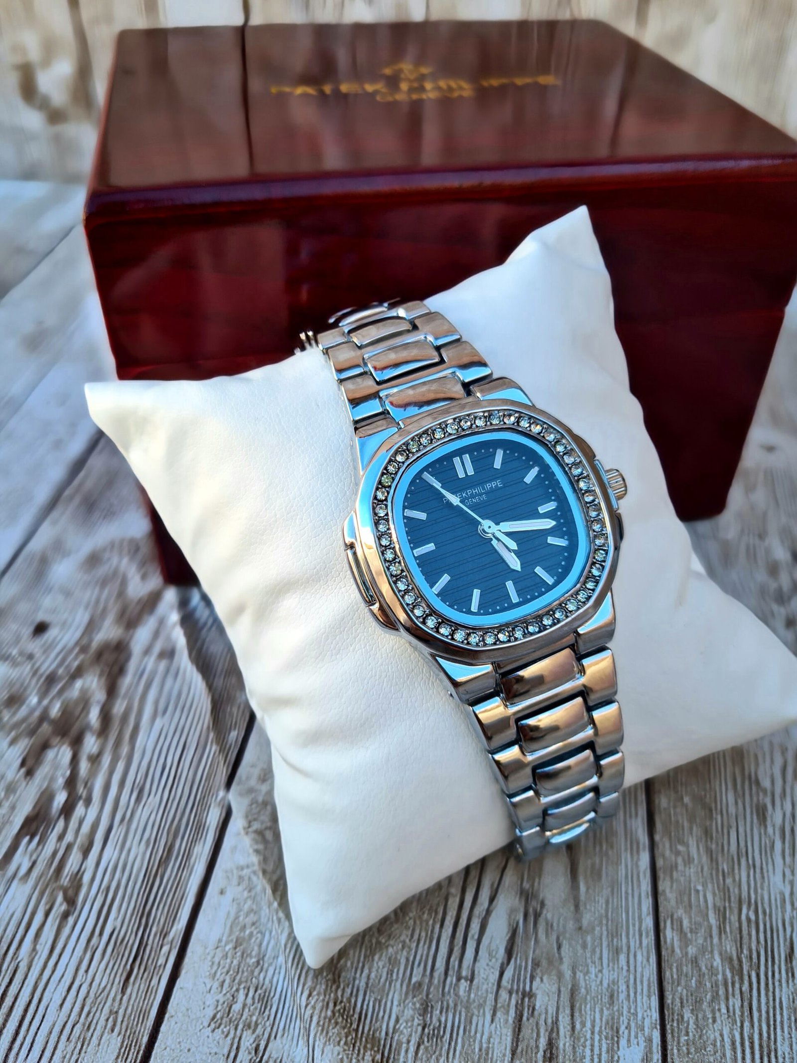 Montre de Prestige Patek Philippe Geneve Silver – Cadran Vert Forêt & Lunette Sertie