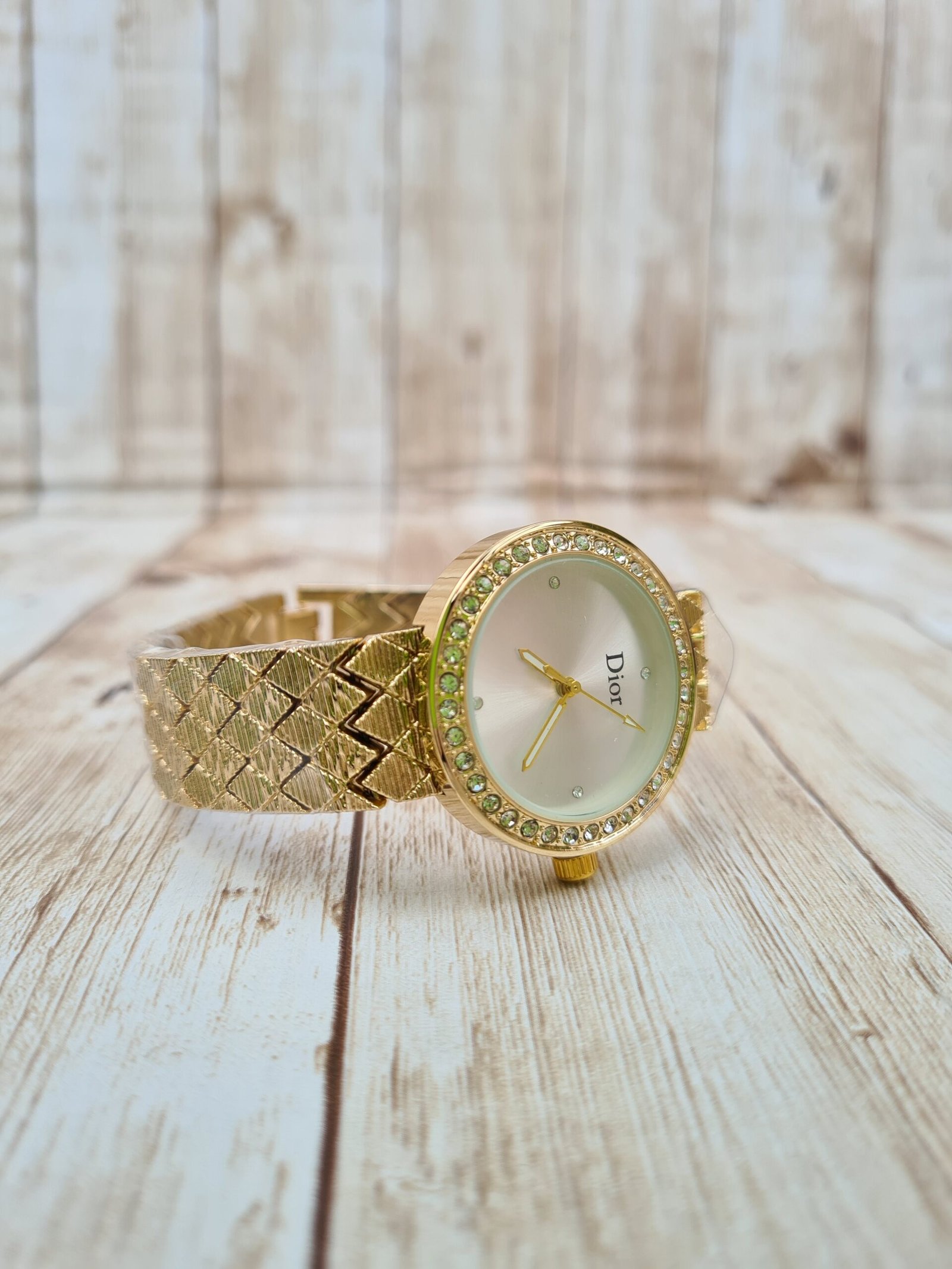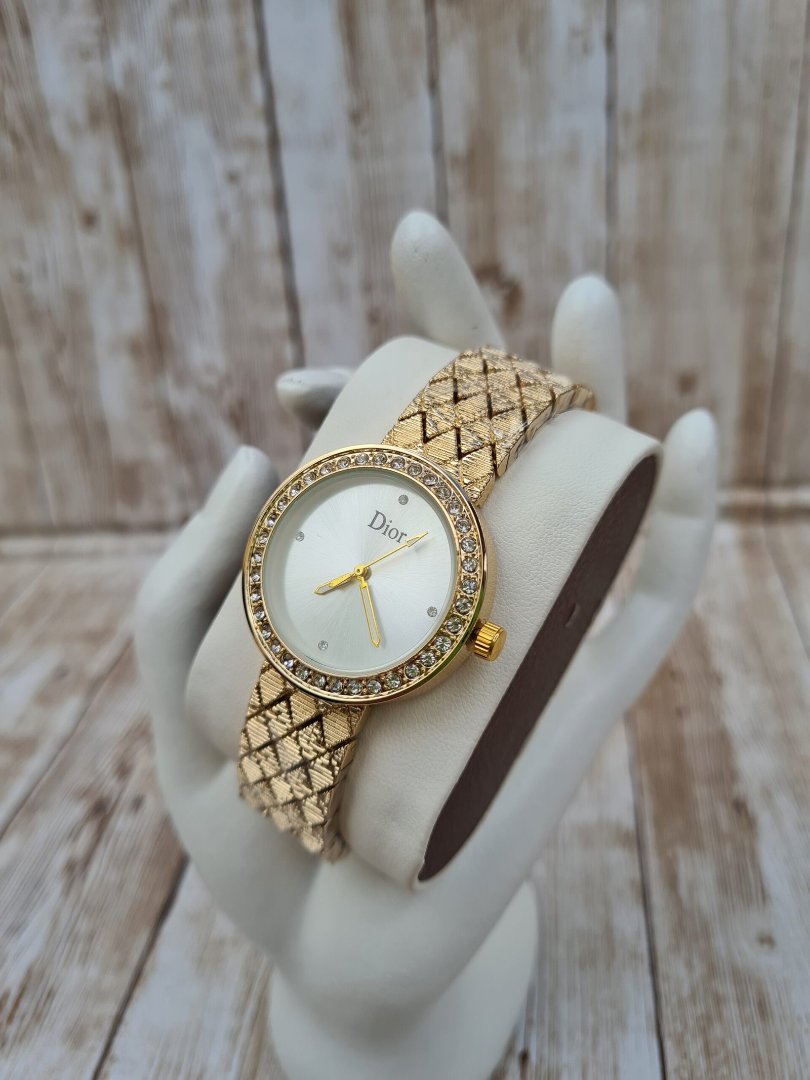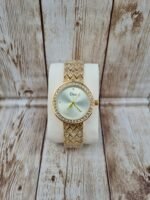 Montre de Luxe « Gold Diamond » – Bracelet à Motifs Pyramidaux & Lunette Cristalline