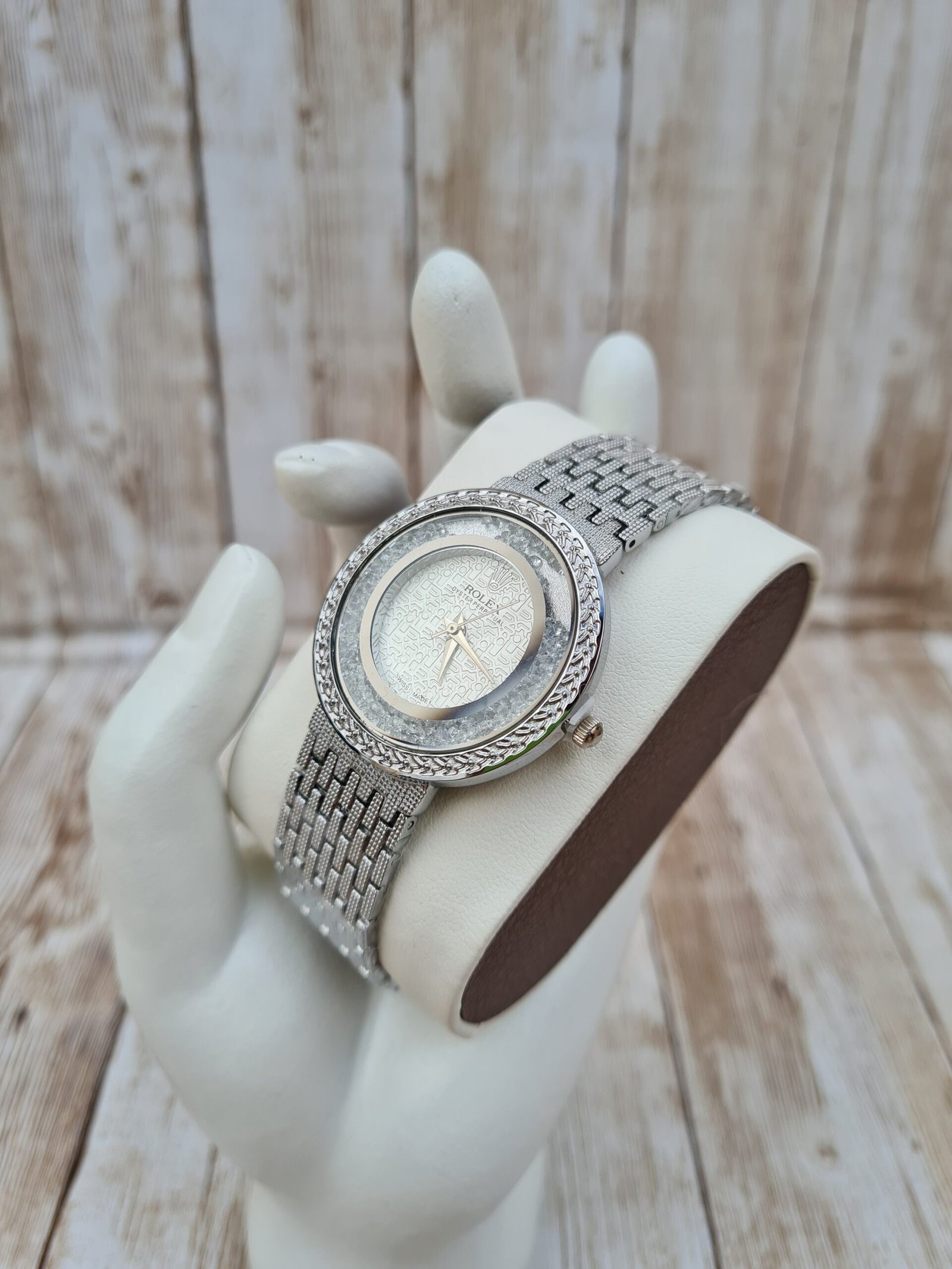 L’incarnation du luxe absolu. Cette montre argentée d’exception est entièrement parée de micro-cristaux scintillants, du cadran jusqu’à la lunette. Son bracelet au design ciselé unique offre une brillance incomparable, faisant de ce garde-temps le bijou ultime pour vos grandes occasions.