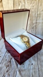 Un Écrin de Collection : La montre est accompagnée d’un coffret luxueux en bois précieux au vernis brillant, transformant chaque déballage en un moment privilégié.