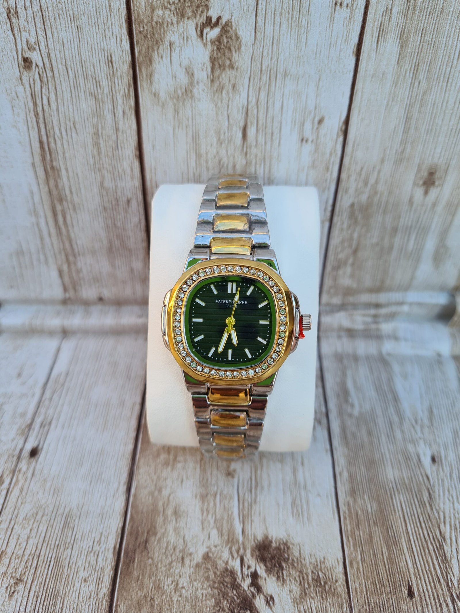 Cette combinaison « Bicolore & Vert » est l’un des choix les plus sophistiqués de votre catalogue. Elle plaira particulièrement aux clientes qui cherchent une montre qui se remarque par son élégance distinctive.