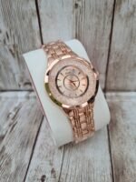 L’accessoire parfait pour illuminer votre poignet. Cette montre raffinée combine la douceur du fini or rose à un cadran spectaculaire entouré de cristaux scintillants. Un mélange idéal de sophistication et de modernité pour sublimer toutes vos tenues, du quotidien aux grandes occasions.