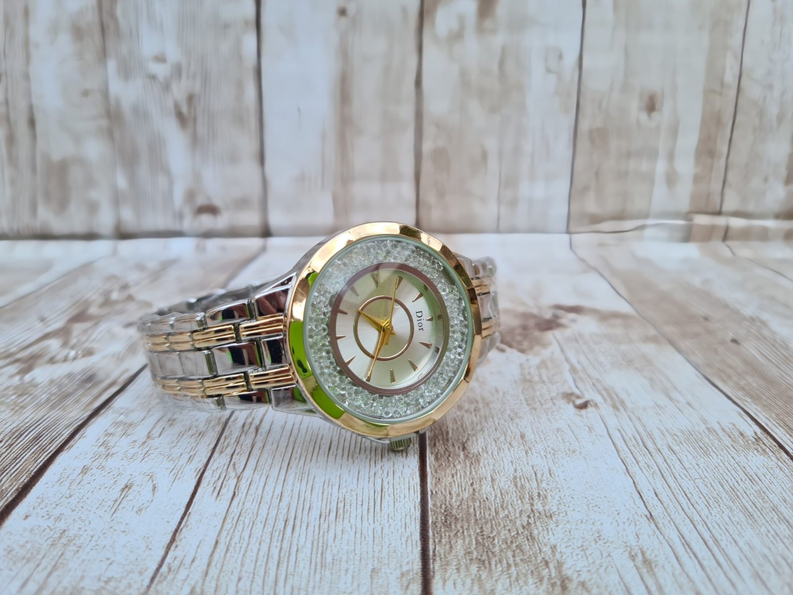 Montre Femme Intemporelle Bicolore – Cadran Cristal Scintillant Argent & Or