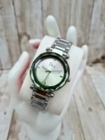 L’élégance sous un nouvel angle. Cette montre argentée captivante se démarque par son verre biseauté en relief qui joue avec les reflets. Son cadran blanc nacré épuré et son design géométrique en font une pièce moderne, idéale pour celles qui recherchent un accessoire à la fois sobre et audacieux.