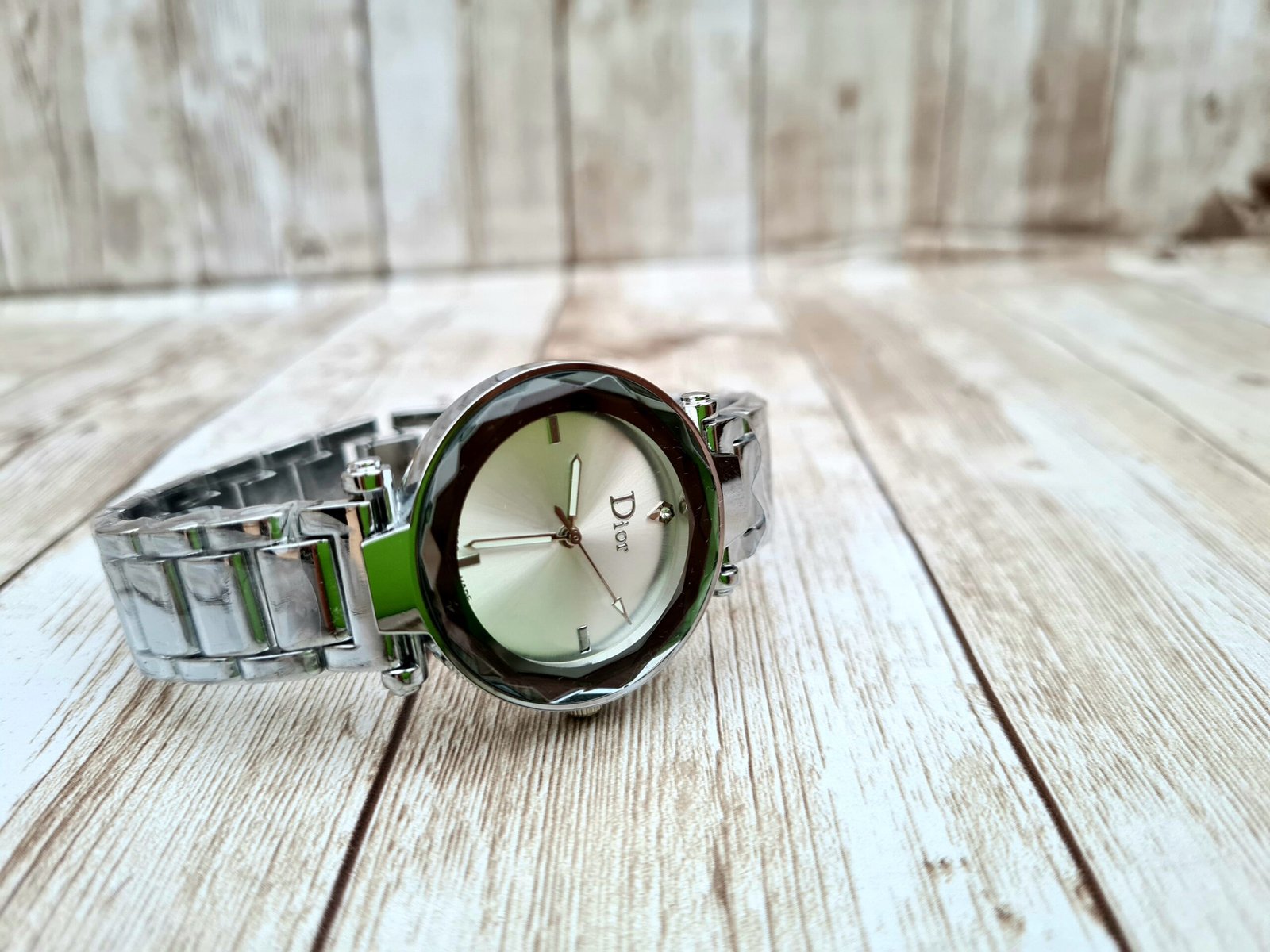 Verre Biseauté « Diamant » : Un boîtier aux bords taillés qui capture et reflète la lumière à chaque inclinaison du poignet.